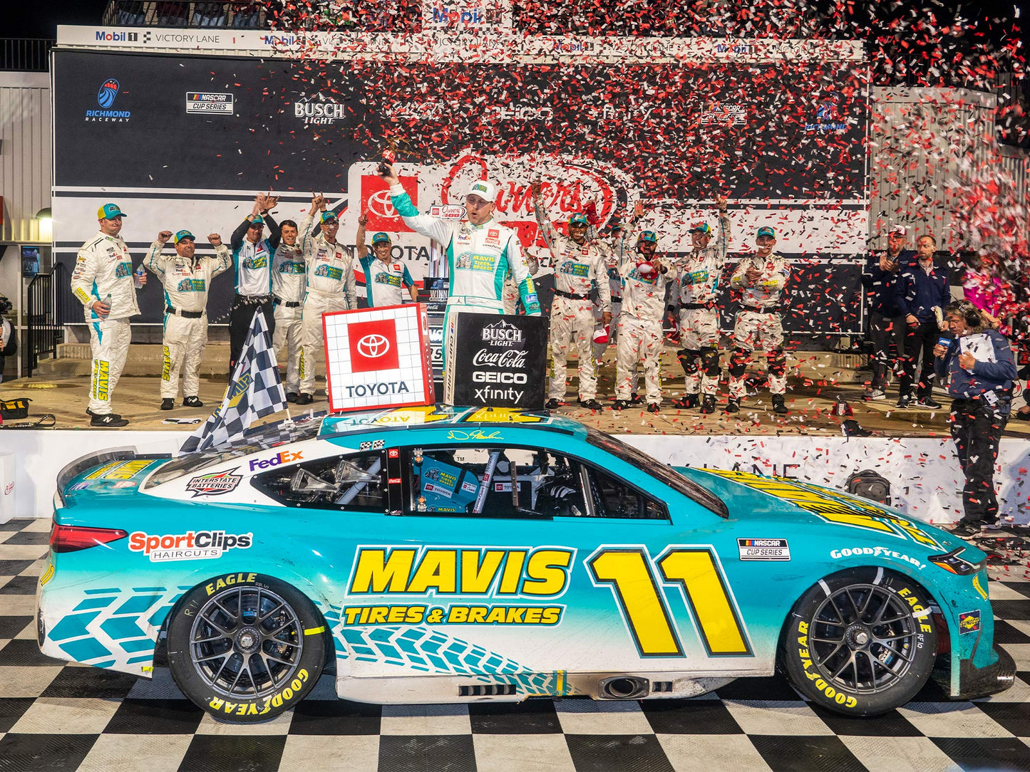 Denny Hamlin’s pit crew did their part to put the driver’s No. 11 Toyota Camry XSE in position to score the win late at Richmond Raceway. Then, Hamlin took care of business inside the car by pulling away from the field on an Overtime restart to take the Toyota Owners 400 victory.