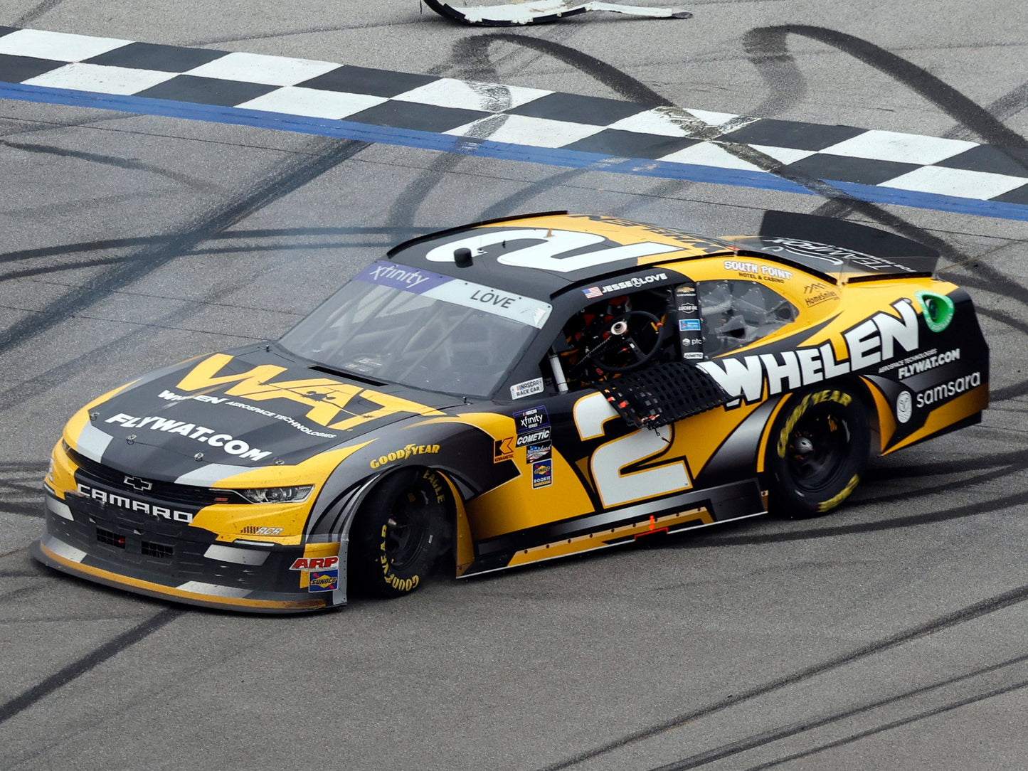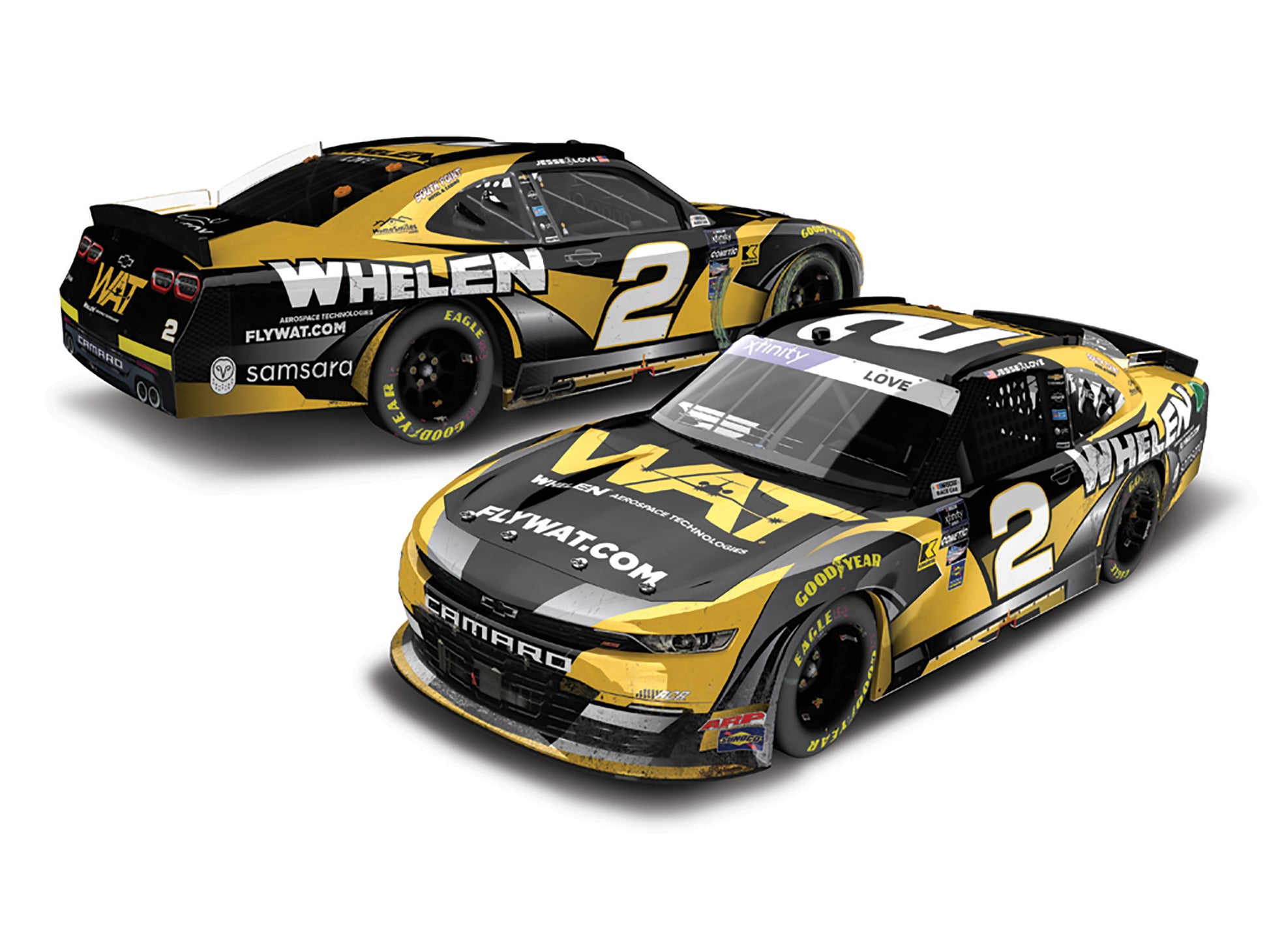 Fans can now celebrate Love’s first career NASCAR Xfinity Series® victory with the official Lionel Racing Raced-Win die-cast of the No. 2 Whelen Aerospace Technologies Chevrolet Camaro. Each 1:24-scale die-cast recreates all the damage, scuffs, and markings seen on Love’s winning Chevy after the race. A smaller 1:64-scale die-cast is also available for order.